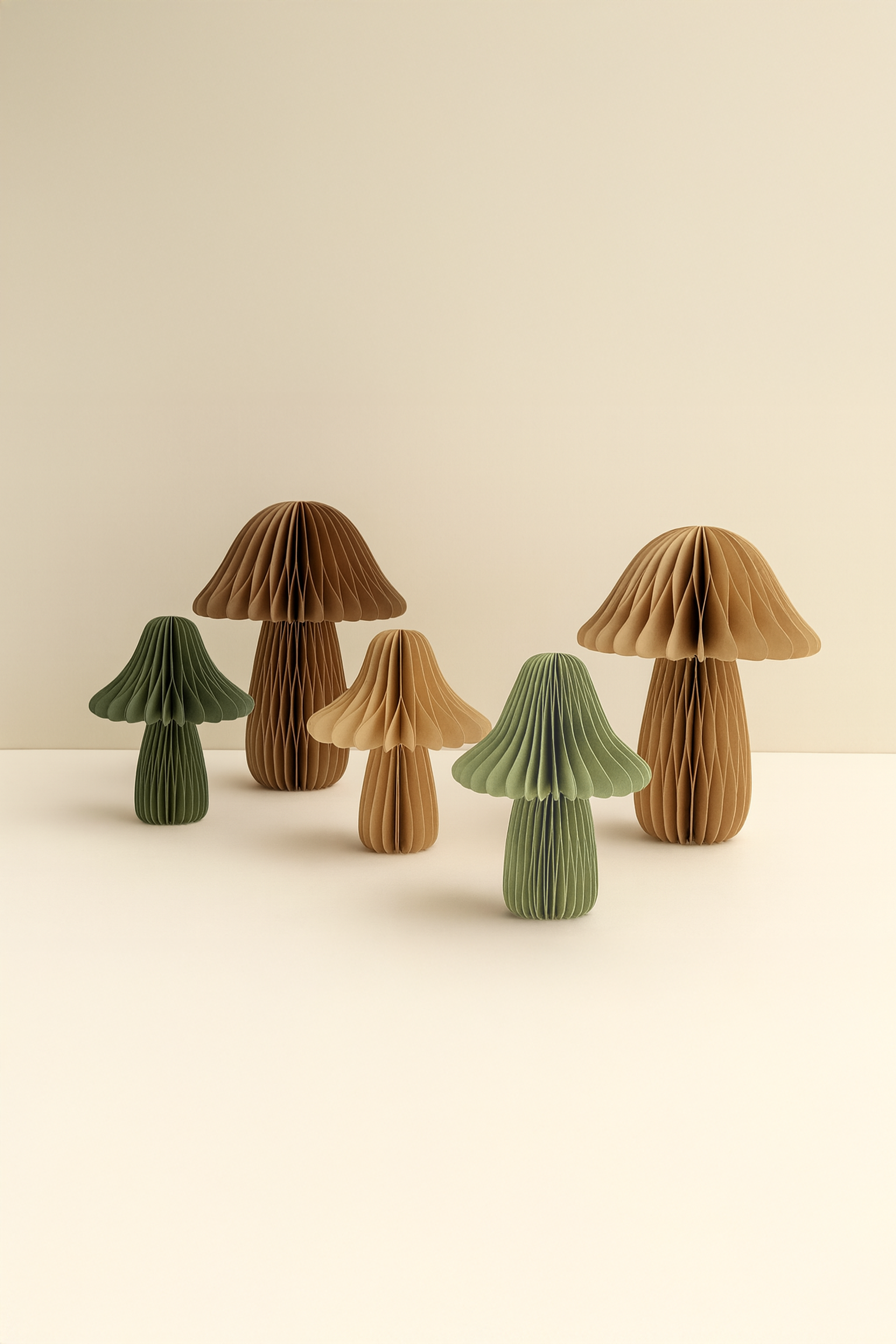 Gefertigt aus hochwertigem Papier sind die Pilze eine bewusste Alternative zu herkömmlicher Deko. So gestaltest du dein Zuhause nachhaltig, ohne auf ein stilvolles Ambiente zu verzichten.