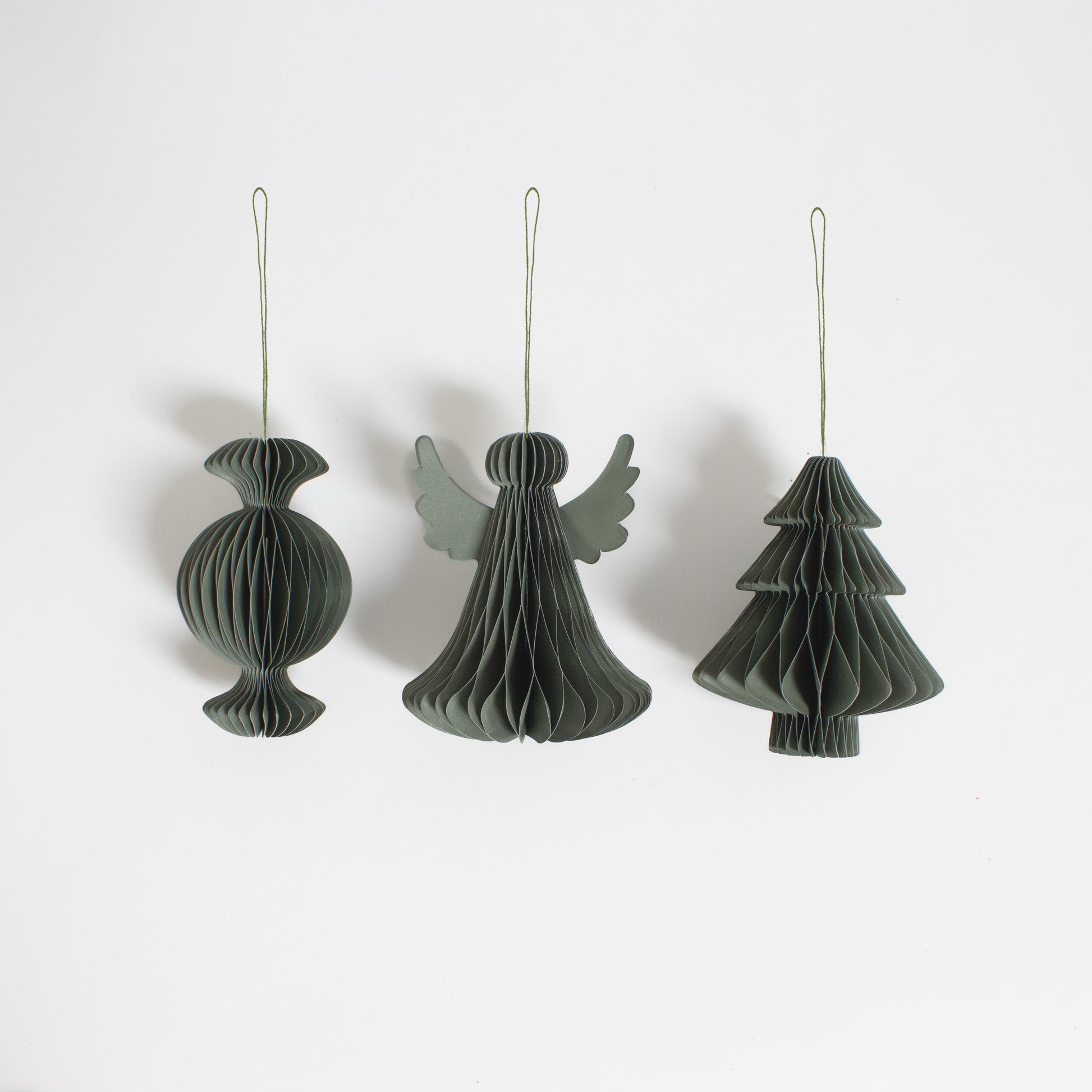 Papier-Christbaumkugeln Set Engel, Tanne & Bonbon