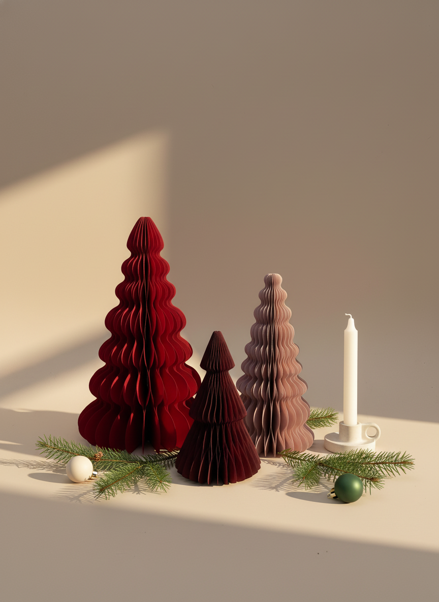 Verleihe deinem Zuhause eine moderne, elegante Weihnachtsstimmung – mit den rot und rosa Papier-Weihnachtsbäumen.