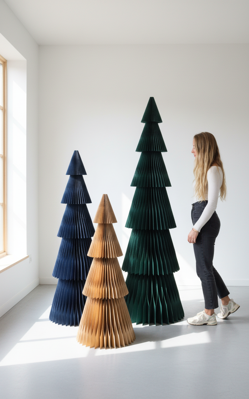 Im Vergleich zu herkömmlichen Tannenbäumen sind diese wiederverwendbaren Papierbäume besonders nachhaltig. Kein Nadelverlust, kein Entsorgen – nach Weihnachten kannst du sie platzsparend verstauen und Jahr für Jahr erneut verwenden.