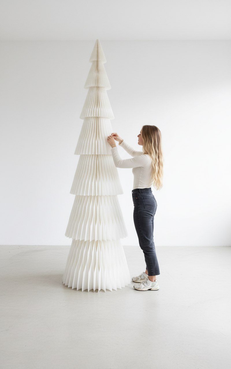 Diese großen Papier-Tannenbäume bringen nicht nur festliche Eleganz in dein Zuhause, sondern sind auch eine umweltfreundliche Alternative zu herkömmlichen Weihnachtsbäumen. Mit ihrem modernen Design und der natürlichen Optik sind sie ein echter Blickfang. Die Bäume bestehen aus mehreren Teilen, die einfach zusammengesteckt werden und je nach Bedarf bis zu einer Höhe von 2 Metern erweitert werden können.